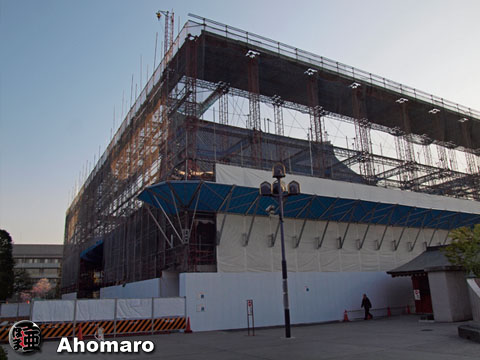 覆われた本堂、すっかり見慣れてしまいましたよね。こんな光景は50年に一度しか見られないのですよ。 |