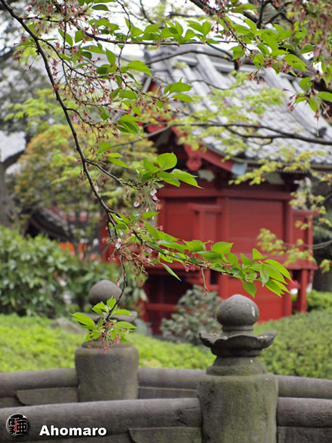 『今朝の浅草神社』 浅草神社のソメイヨシノ。 まともな格好で残る花は皆無ですね。 実がどんどん膨らんでいます。これからが楽しみですね。