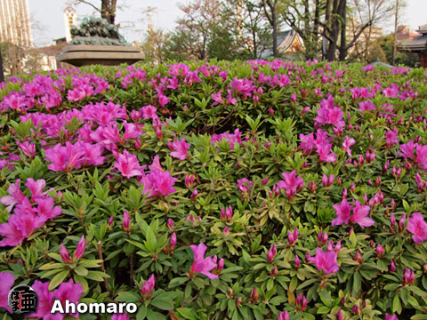 これからテントで、すっぽりと覆われてしまうんだよね・・・。 花は散ってしまったけど、名残を惜しんで撮り続けましょう。 花が無くなても緑が綺麗になるのも良いですよね。 平和記念塔前の八重桜は満開になりました。 ここは日当たりが悪いので、ソメイヨシノも多少残ってますね。 八重桜も今週いっぱいで終わるのでしょうね。 淡島堂の梅の木に実が成ってましたよ。今まで、桜ばっかり気を取られていて気付きませんでした。 昨年は実は成らなかったんですよね。梅は一年おきに実を付けるようですね。 これから梅の実も気にかけておきます。 六角堂の垂れ桜も惨めになってしまいました。 こちらもそろそろ実を付けてきましたね。 境内は桜に変わってツツジが満開ですよ。 ツツジが総て咲きそろうのは、今月末頃でしょうね。