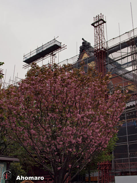 『今朝の浅草神社』 浅草神社の桜だった枝たち・・・。でも、もう書くこと無くなってしまったんだよ。 今年はいったい何日、同じことを書き続けていたのでしょうかね・・・。 浅草神社の西側に三社祭の奉納提灯喧嘩枠が取り付けられました。三社祭まで後、ちょうどひとつきです。
