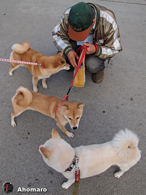 わ〜、今朝の境内はワンちゃんたちがいっぱいだね。