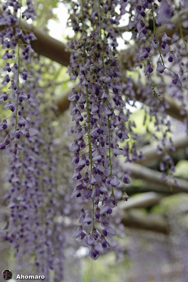藤棚の中心には根本から数本に分かれた巨木が植わり、周囲に伸びた枝は700平方メートルにもなっているのです。このような藤棚が園内に3ヶ所あるのです。