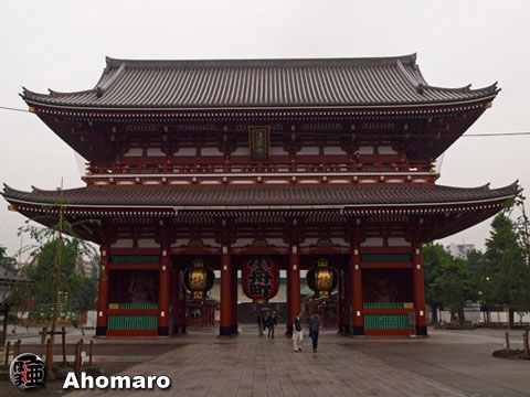 家を出る時は、雨が止んでいたのですが、本堂前まで来ると再び降り出してしまいました。 傘を持って来なかったのでしたが、なんとかカメラだけは濡らさずに帰ってきました。シャツの下に入れてね。 雨の朝は参拝客が極端に減るのです。 今朝の6時開門に並んで居た方、8名だけでした。 モモちゃんの冥福と、家族の健康をお祈り申し上げます。 『本堂から宝蔵門』 開門前の本堂前です。 参拝を済ませてお帰りになるみんさん。 『本堂から宝蔵門の大提灯』 今年の三社祭の宮出しの仲見世一帯は、ベニヤ板で覆われてしまうようですね。