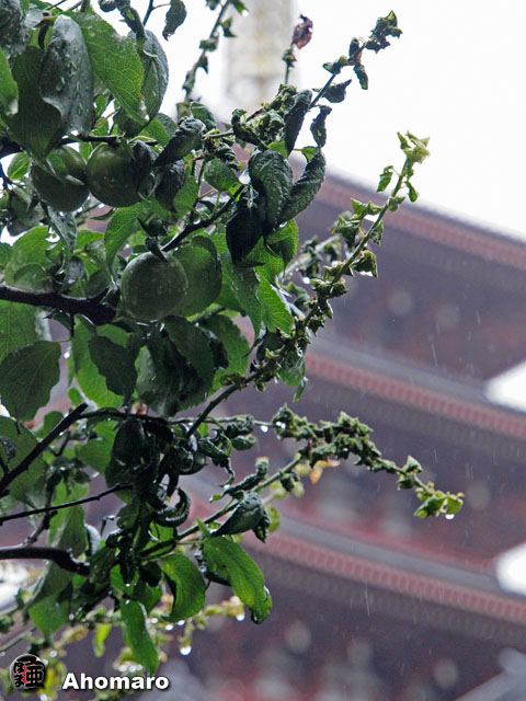 『今朝の浅草神社』 こんな表情を見せてくれるなんて、今朝の雨は素敵な雨ですよね。 ほ〜ら、素敵。雨で暗いところの手持ち撮影だったので、10枚撮った中の手振れしなかった写真はたった一枚だけでしたよ。写って良かったよね。 実ってくると、どんどん黒くなるのですよ。