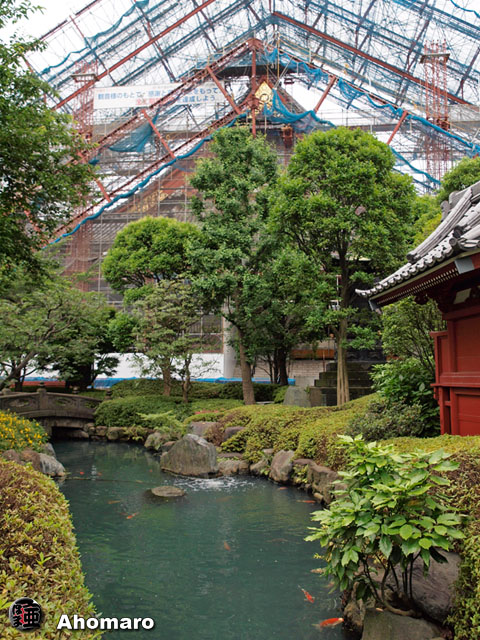 さて、気を取り戻して、修復作業中の浅草寺本堂です。 開門30分前は、ほとんど人影がありません。 正面のドアの敷居が直されたようです。 今朝はスムーズに開門しました。 今日も一日、良い日でありますように。 いつもの場所には、モアちゃんとチャケちゃんがみんなを待ってましたよ。 『本堂から宝蔵門』 開門5分前。 開門5分後。 こちらは開門30分前です。 『本堂から宝蔵門の大提灯』 同じく開門30分前。