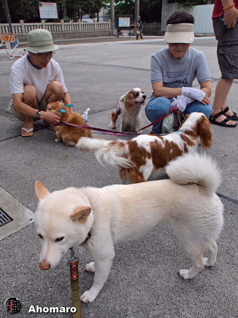 何を見てるか、三匹並んでどうしたの。見ているワンちゃんも写してあげたかったけど、ダメってのがど真ん中に居るので・・・。