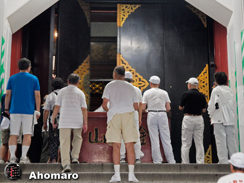 紅ハスの新しい花が咲きました。 とっても大きく、綺麗なお花ですよ。 白ハスは次の芽も無いので、今年の花は終わってしまったようですね。 いつもより10分遅れで境内に到着でした。そういえば、今朝は爽やかな目覚めではなかったんですよ。もしかしたら、昨夜から晩酌を止めたことが原因してるのでしょうかね・・・。 今朝の参拝客、いつもより多いですね。 今日も一日良い日でありますように。 みなさんも、元気で幸せでありますように。 剣道部の方々の練習なのかな。 浅草で運動部の合宿するところ、どっかに有るんでしょうね。以前も空手部の方々が集まってましたよ。 『本堂から宝蔵門の大提灯』
