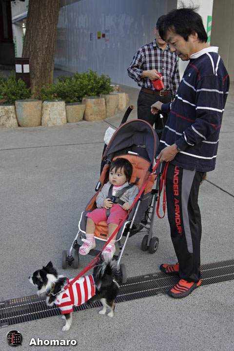 赤ちゃんが珍しいのか、ワタル君とモモちゃんもレイナちゃんをじ〜っと見つめてましたよ。あれは犬じゃ無さそうだねとか話してたのかな。