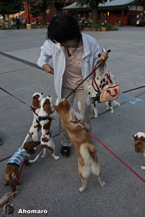 毎朝、リリーちゃんとお逢いする場所ですが、今朝は早めに帰ってしまったのでまだ来てませんね。でも、境内から帰ってきたテンちゃんファミリーと遭遇。