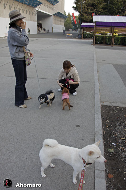 浅草神社でも同じポーズをとってれるのです。以前はお座りをさせていたのですが、この格好が良かったので続けているのです。