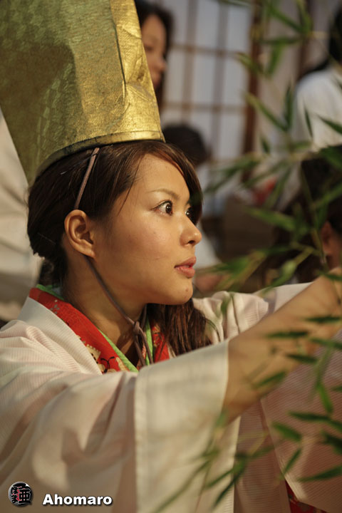 撮影を終え、混雑する福娘さんたちはパス。あほまろが福を授かったのは、神社出口付近に居たこの方々から今年の福を授かってきましたよ。