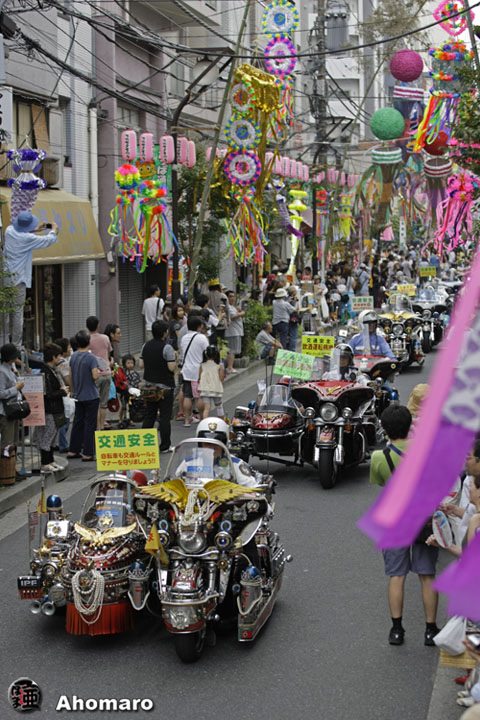 交通安全パレードに、安全とは思えない中年暴走族のようなデコバイクの行列、意味あるのかな・・・。