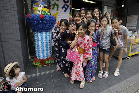 浴衣姿の子どもたち、写真撮ってよ・・・。