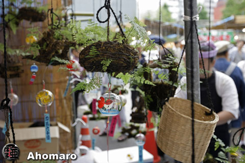 ほおづき市には、竹などの芯材に山苔を巻きつけ、しのぶ草を束ねた「釣りしのぶ」も人気なのです。