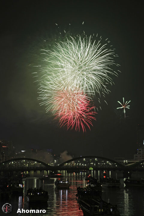 午後7時30分から、手前の第二会場からも打ち上げられます。今朝も時間が無かったもので、とりあえず簡易現像ですが、昨夜の雰囲気をちょっとだけ「ドーン。