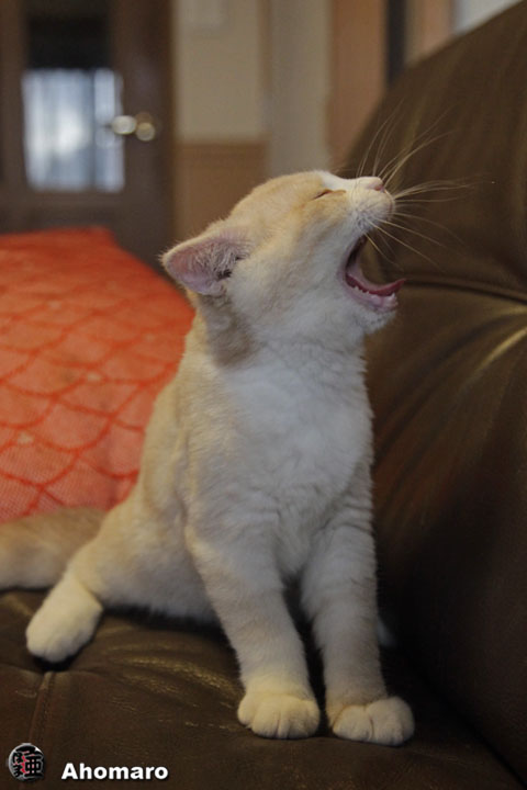 今朝の大和君。大きなあくびでまだ眠そうだね。