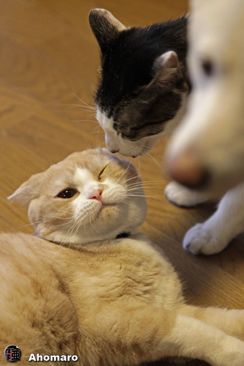 ヤマト君、舐められて気持良さそうだね。