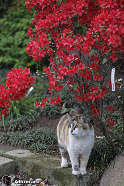 にゃ〜んと霧島ツツジの中から出て来た三毛猫ちゃん。