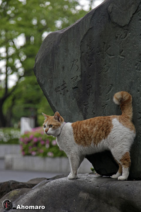 今朝の境内、パワースポットの後ろを茶子ちゃんが歩いて行きましたよ。