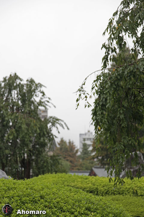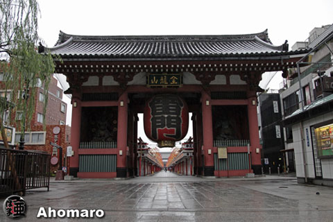 浅草寺の開門は午前6時です。雨が激しいので本堂の上から。