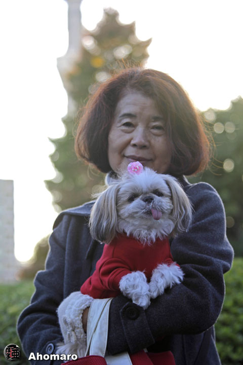 大きな袋の中は、ヨン様土産がいっぱい詰まっているんだよ。ワンちゃんはショコラちゃんですね。