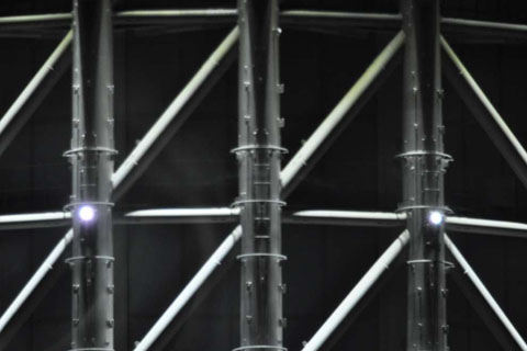 LEDライトの光が鉄骨に反射しているだけの写真となりました。