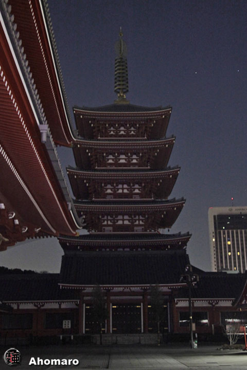今朝の日の出は午前6時49分、雷門到着は5時40分でした。