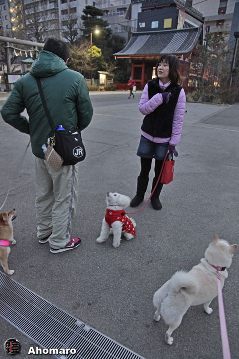 参拝を終えていつものところ。お豆腐色のベッちゃんさんと砂肝の秀蔵親分が仲良くしてた。