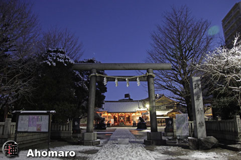 本殿前。今朝から神主さんも心を入れ替えたのか、本殿の扉が開いてましたよ。