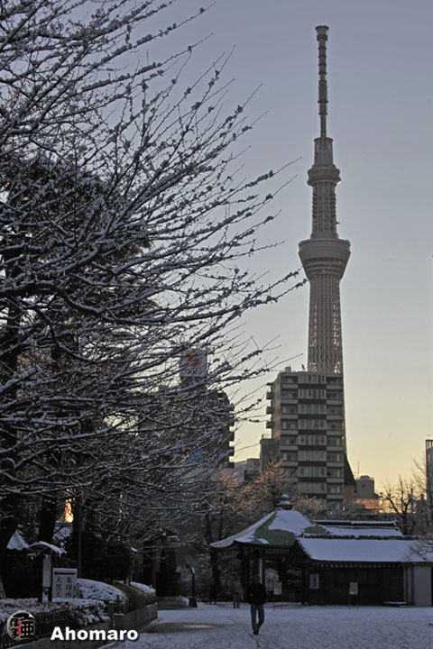 今朝の日の出は午前6時47分、雷門到着は5時55分でした。
