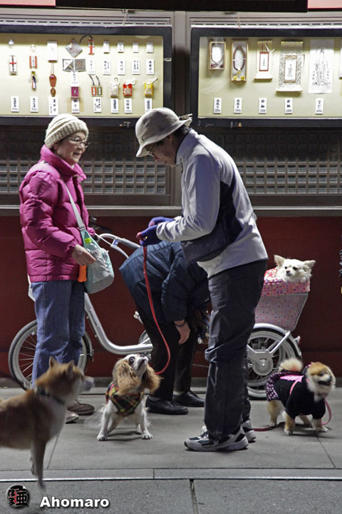 影向堂で、砂肝の秀蔵親分とお豆腐色のベッちゃんさん。