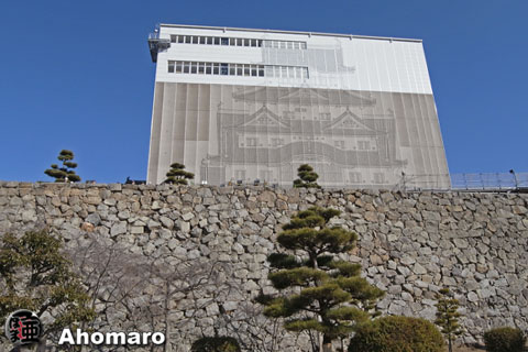 天空の白鷺と題された姫路城「平成の大修理」見学施設、昨年、社団法人「日本サインデザイン協会」から、黒と白のメッシュシートで表現した大天守の実物大壁画の完成度が評価され、263点の応募作品の中から大賞、最優秀賞に次ぐ優秀賞9点のひとつに選ばれたそうです。