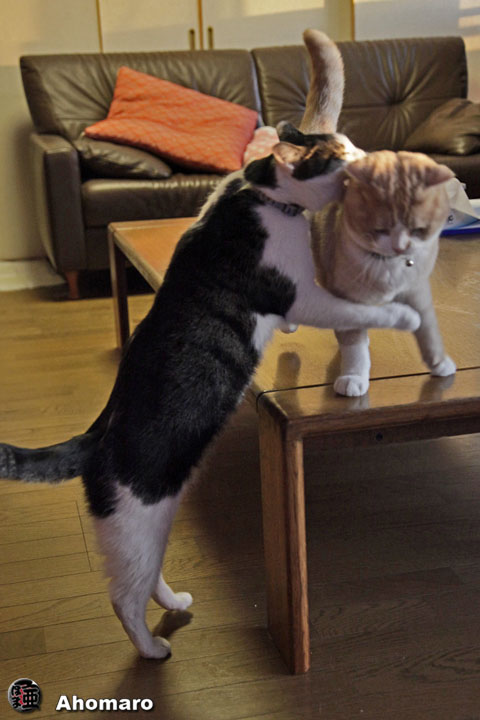 ヒロちゃん、いきなり嚼みついたよ。イデデデ・・・!ヤマト君慌てて飛び降りた。