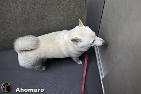 滑って転んでしまったナナちゃん、チラッとあほまろの顔を見上げてから、下を向いてしまったんだよ。犬にも、照れくさい態度ってのもあるようですね。