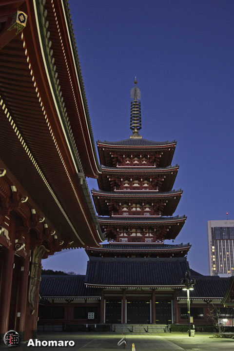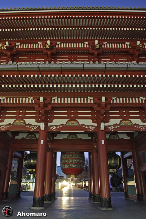 宝蔵門の大提灯。招き猫も今日で見納め。