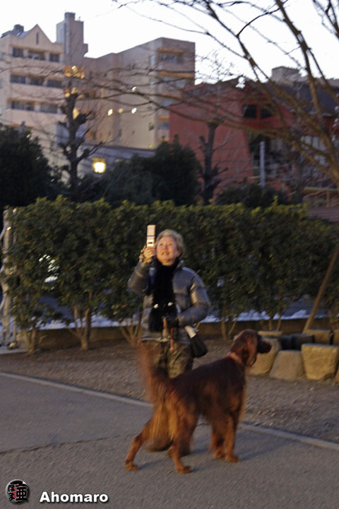 まだ暗い境内で、シージェイ君が写真を撮ってましたよ。