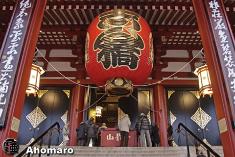 今朝の日の出は午前6時37分、雷門到着は6時10分でした。今朝も雷門の照明が点いてました。