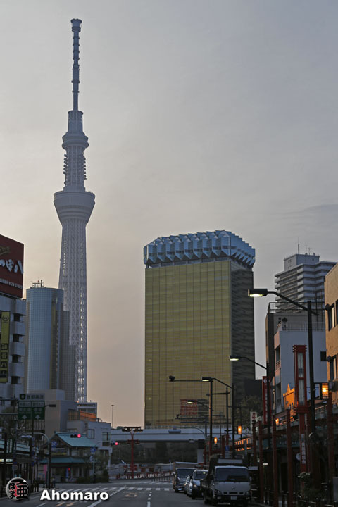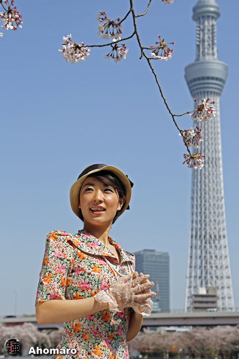 最初の撮影スポットは、桜を離れて水上バスと東京スカイツリー。ちょうどヒミコが停泊していたもので。