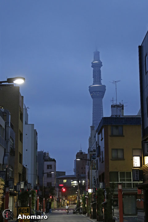 とりあえず出かける前の設定試験で、秘密基地の前から東京スカイツリーの展望台を1000ミリで覗いてみると、見物客の表情まで見えるほどでしたが、頑丈な三脚を使っても風の影響を受けて揺れるのと、オートフォーカスのピントがシビアだったのが重なって、ブレとピンボケのダブルパンチ画像だったよ。