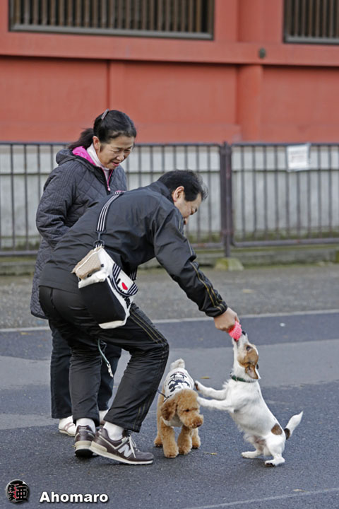 浅草のロッキーちゃん、お豆腐色のベッちゃんさんさんのカートに興味を持ってたよ。