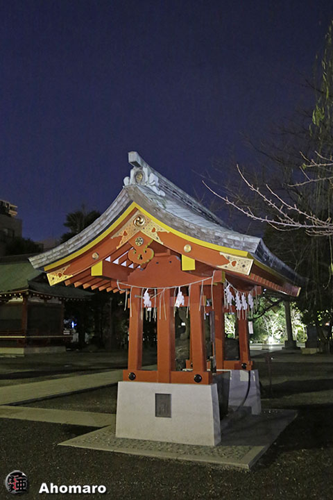 まだ暗い境内。今朝は消防イベント準備が行われていました。