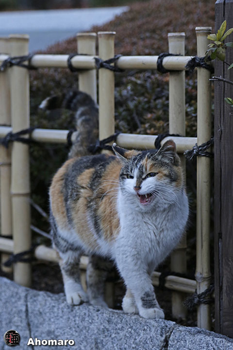 今朝の境内、寒かったけど、三毛猫ミーちゃん出て来ましたよ。