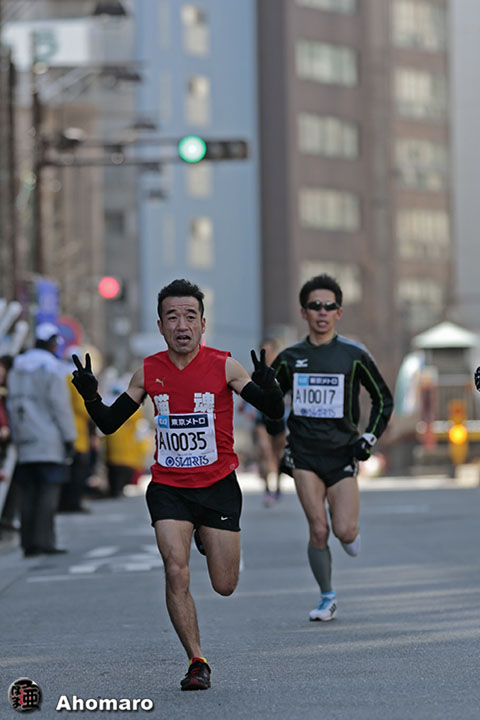 市民ランナーが雷門前に来ると、何故かバンザイしたくなるのかな・・・。午前11時半頃は、太陽の位置が選手の真裏になるので、ポジションはいつもの「影」狙い。