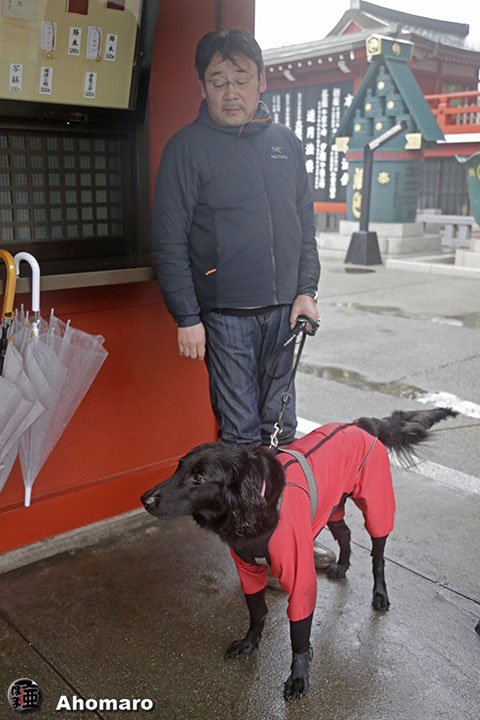 あぁ、今日も雨・・・、それも強い雨であほまろもナナちゃんもずぶ濡れだけど、今日は雷門前の写真を忘れなかったよ。
