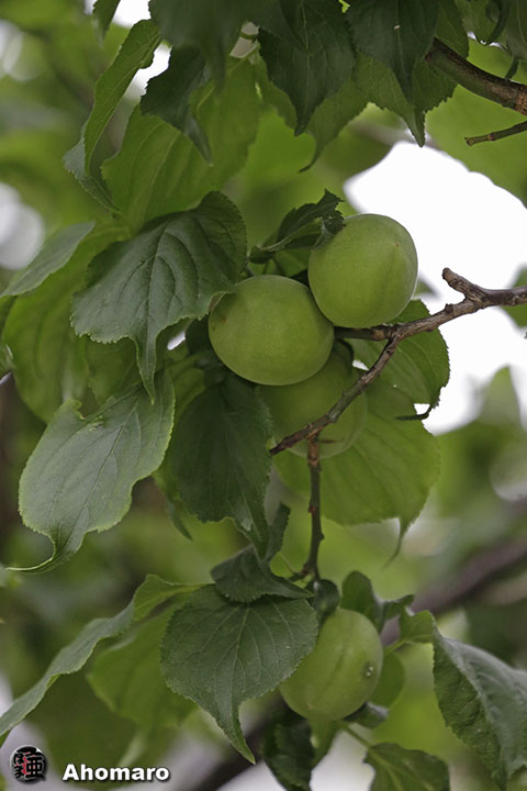 奥山の梅の実はそろそろ刈り入れ時になったね。
