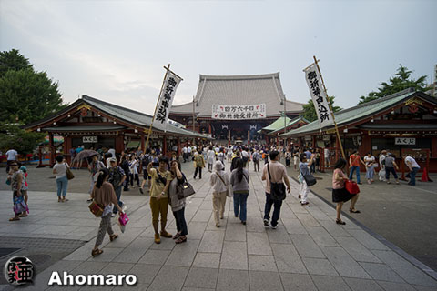 「四万六千日・ほうづき市」最終日。カラーとモノクロ二台と脚立かかえて、薄暮の境内を撮ってきました。