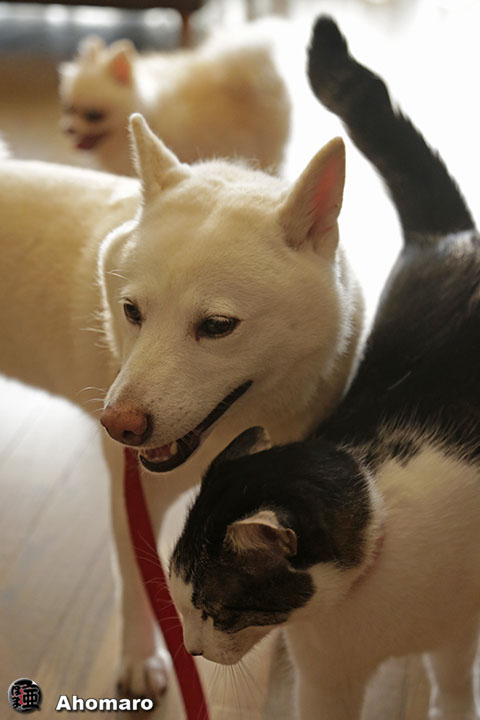 ミーちゃんとナナちゃんは仲良しだけど、ミーちゃんは以前に大きなワンちゃんに追いかけられて怖い思いをしたんだよね。