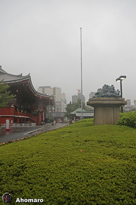 激しい雨なので、境内から東京スカイツリーは望めません。