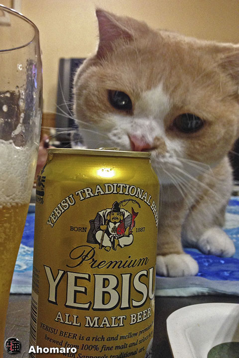 ヤマト君の晩酌。暑いからって、調子こくなニャロメ!