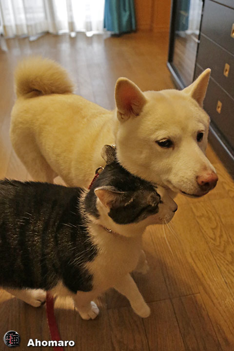 待ってたよ。 北海道犬ナナちゃんと野良猫ヒロちゃんの早朝物語か・・・。